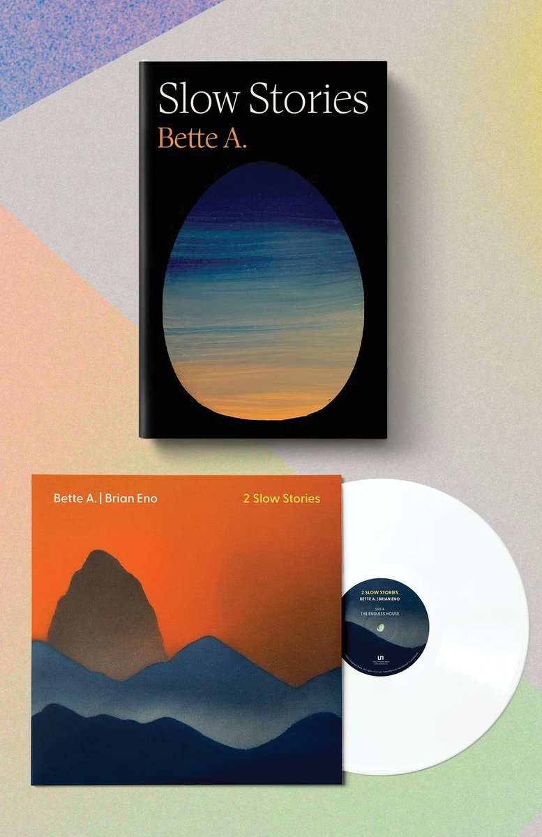 • 2 Slow Stories vinyl record (12-inch white vinyl with gatefold jacket featuring original music from Brian Eno and narration by Bette A.)